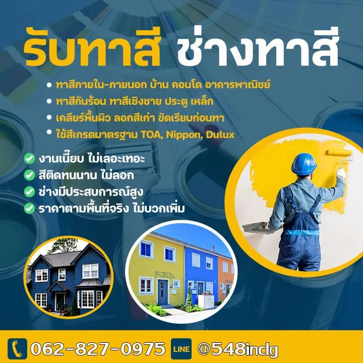 ต้องการทาสีบ้านภายนอก ภายใน เรียกใช้บริการช่างทาสีบ้านใกล้ฉันกระทุ่มแบนร้านคุณภาพของเรากันดีกว่า ด้วยสีที่เลือกเป็นของแท้ 100% ช่างมีประสบการณ์ทาสีมาอย่างโชกโชน มืออาชีพ ช่างทาสีบ้าน ราคาย่อมเยา มีใบเสนอราคาให้ ค้นหาง่าย ขอคำปรึกษาได้ทุกเรื่องทาสีบ้านฟรี งานเสร็จไวตรงเวลา ไม่ทำให้ผิดหวังทุกการจ้างงาน ได้บ้านสีสวย ไม่หลุดลอกเกิดปัญหาสีตามมาภายหลัง